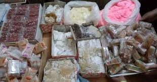 16000 لتر منظفات، و100 إستيكر داخل مصنع دون ترخيص، وطن أسمدة مجهول المصدر، وكمية من الدجاج والبانية مجهولة المصدر، و4 محال جزارة لعرضهم للبيع لحوم مكشوفة وعرضه للتلوث.