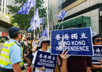 أعلنت الشرطة في هونج كونج وفاة متظاهر ليلة السبت عندما سقط من على سقالة أثناء محاولته تعليق لافتة سياسية.