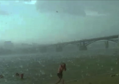 باغتت عاصفة محملة بالبرد رواد شاطئ في سيبريا بروسيا.