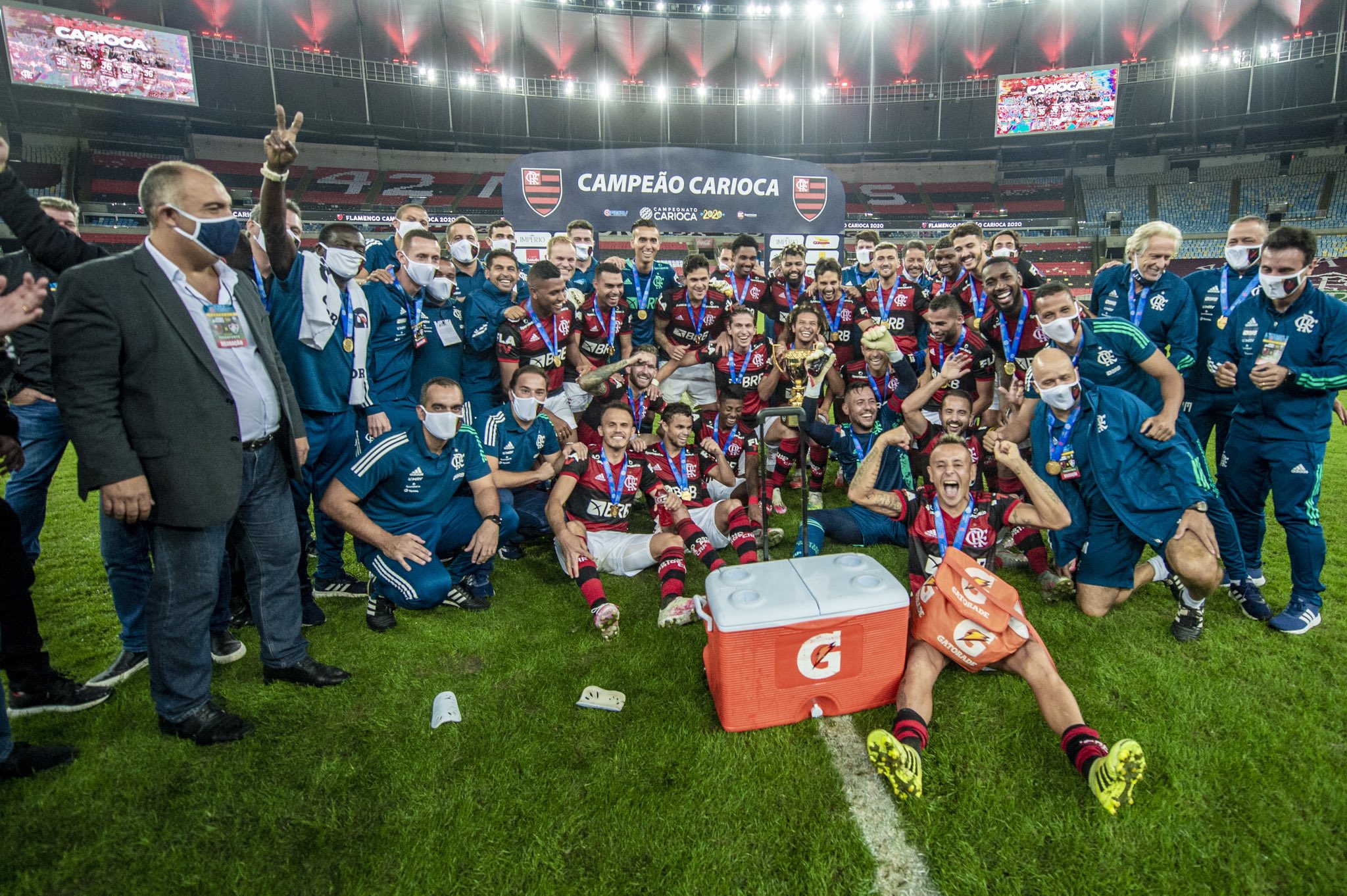 تُوج فلامنجو بلقب كامبيوناتو كاريوكا (بطولة ولاية ريو دي جانيرو البرازيلية) بعد الفوز على غريمه التقليدي فلومينينسي بنتيجة 3-1 في مجموع المباراتين.