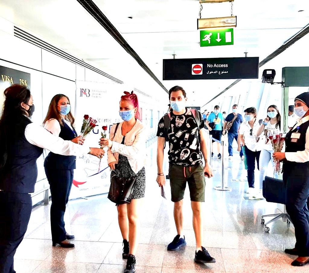وقال بيان لوزارة الطيران، إنه تم استقبال الطائرة بتقليد رش المياه واستقبال الركاب بالورود، وكان في استقبالهم الطيار نبيل الملاح، مدير مطار الغردقة، وفريق العلاقات العامة بالمطار، لتقديم كافة التسهيلات اللازمة وسرعة إنهاء إجراءات الوصول، وتطبيق الإجراءات الاحترازية المشددة والتباعد الاجتماعي حفاظًا على سلامة المسافرين والعاملين بالمطار.