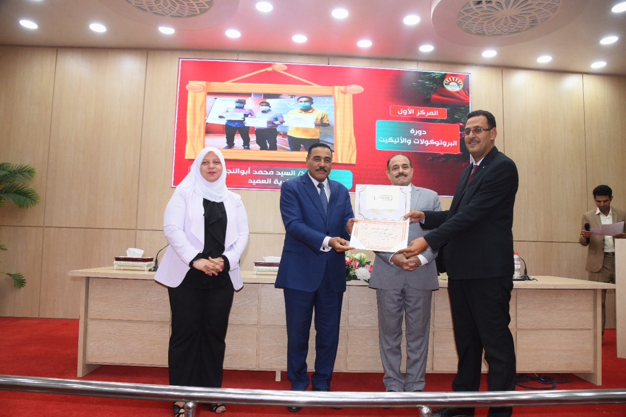 وخلال الاحتفالية، كرم اللواء خالد شعيب الدكتور مهندس أحمد مصطفى ياسين سليمان؛ لحصوله عى درجة الدكتوراه في فلسفة الهندسة الإنشائية، موجهًا الشكر للقائمين على تنظيم وتنسيق الاحتفالية وظهورها بالمظهر اللائق بالحدث.