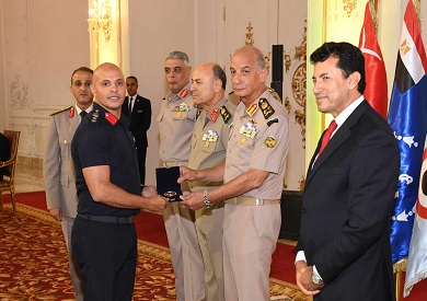 وكرّم القائد العام للقوات المسلحة، لاعبى ولاعبات جهاز الرياضة للقوات المسلحة المشاركين فى مختلف البطولات الدولية والعالمية، والحاصلين على مراكز متقدمة فى البطولات المختلفة، وعدد من قدامى الأبطال الأوليمبيين التابعين للمؤسسات العسكرية الرياضية، والحاصلين على مراكز متقدمة فى الفروسية وأيضاً الحاصلين على مراكز متقدمة من الإتحاد المصرى للإعاقات الذهنية.
