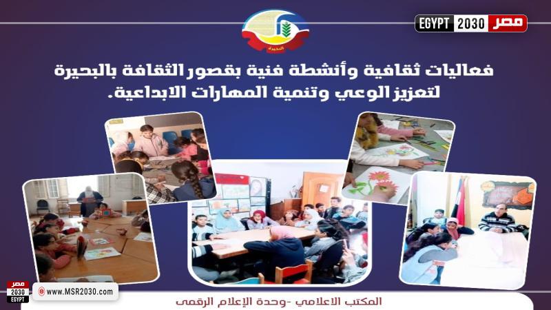 نفذ فرع ثقافة البحيرة برئاسة محمد البسيوني، سلسلة من الفعاليات الثقافية والفنية الهادفة ومجموعة متنوعة من الأنشطة بمختلف قصور الثقافة بالمحافظة، والتي تقدم بالمجان.