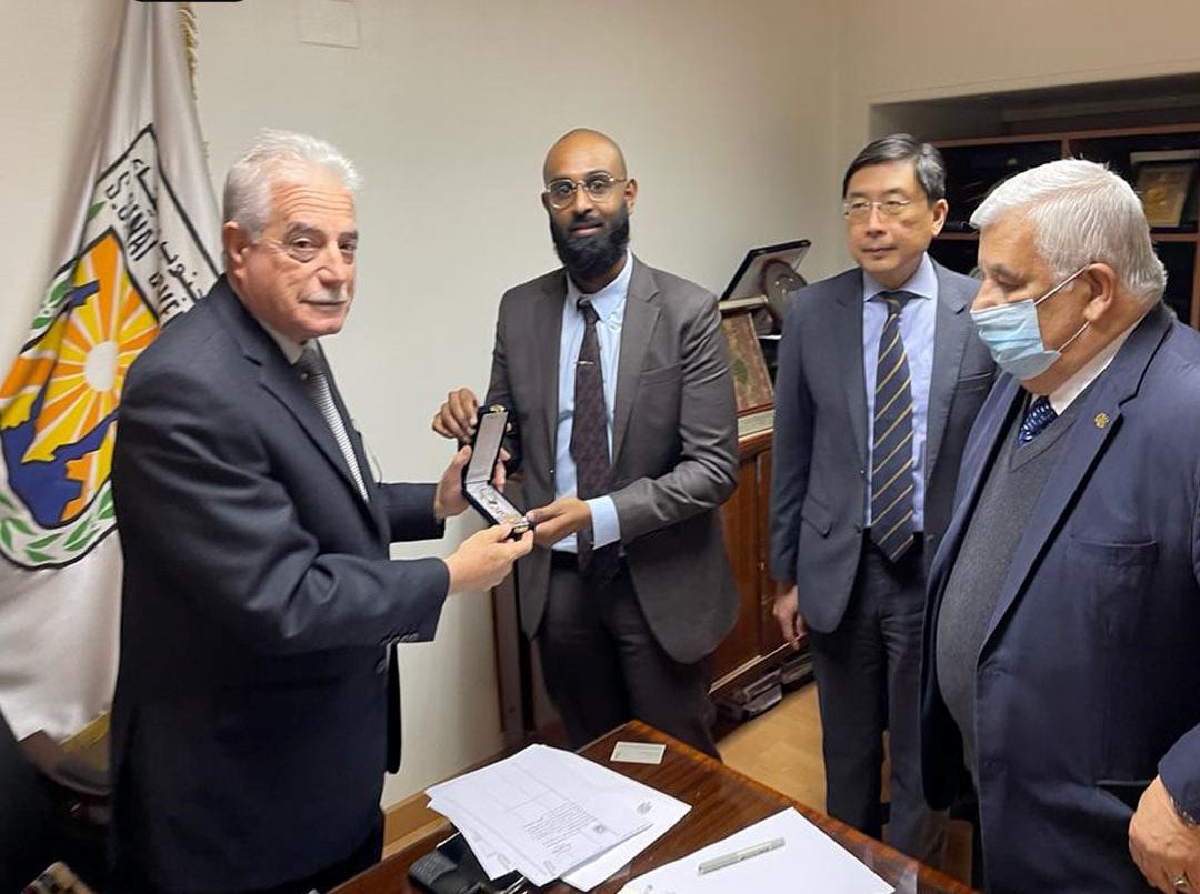 وفى نهاية اللقاء، أهدى محافظ جنوب سيناء، درع المحافظة لسفير دولة سنغافورة تقديرا له.