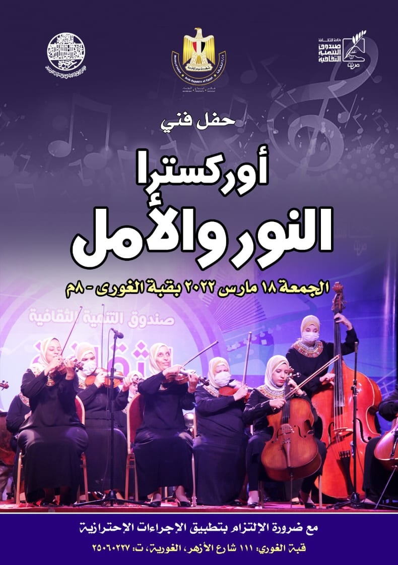 يستضيف مركز إبداع قبة الغوري بشارع الأزهر حفل فني للأوركسترا النور والأمل في الثامنة مساء غد الجمعة.