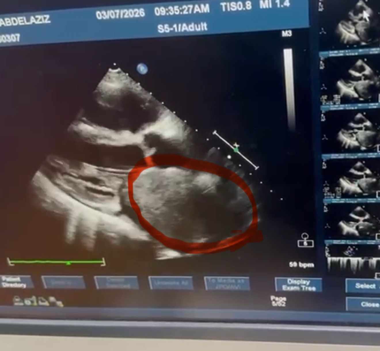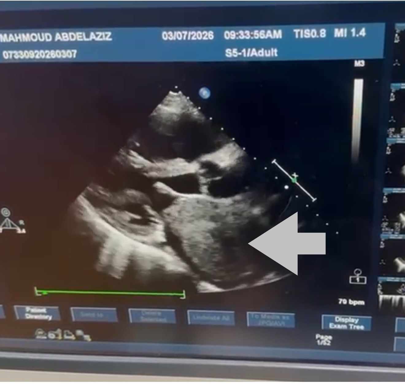 وأوضح الفريق الطبي أن الورم من نوع Cardiac Myxoma، وهو من الأورام القلبية النادرة التي تنشأ داخل حجرات القلب، وقد تسبب في انسداد شديد بفتحة الصمام الميترالي أثناء تدفق الدم، ما أدى إلى ارتفاع ملحوظ في ضغط الشريان الرئوي، نتج عنه ارتجاع شديد بالصمام الثلاثي الشرفات، إضافة إلى تضخم بالأذين الأيسر وحدوث ذبذبة أذينية.