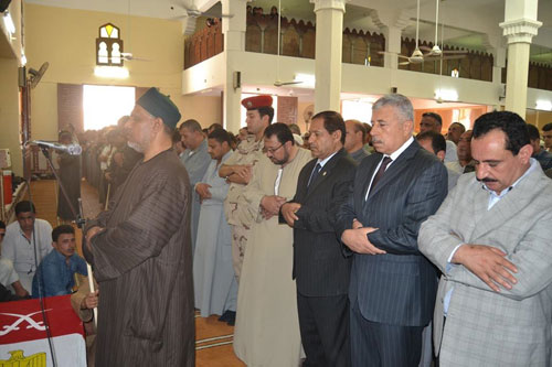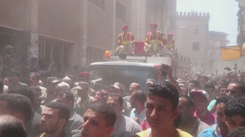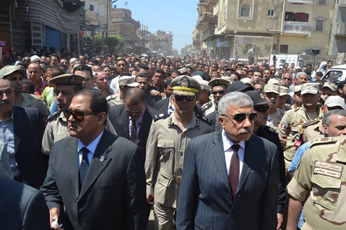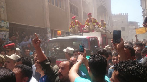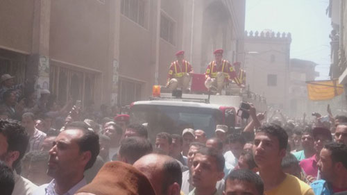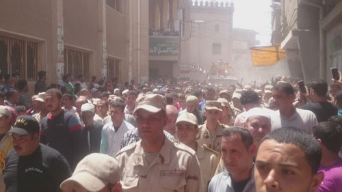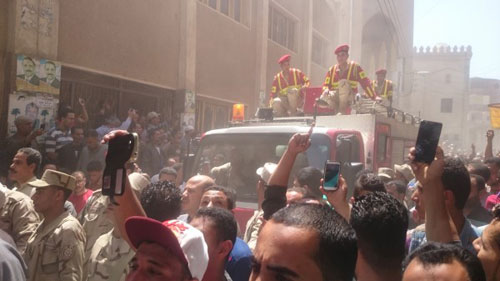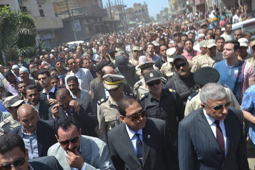 ورددوا هتافات: «لا إله إلا الله الشهيد حبيب الله»، «الإرهاب والإخوان أعداء الله، «يا شهيد نام واتهنا واحنا نجيك على باب الجنة»، «الله أكبر الله أكبر يحيا شهيد الوطن»، «قول ما تخفشي يسقط يسقط الإرهاب» و«كلنا معاك يا سيسي ضد الإخوان».
