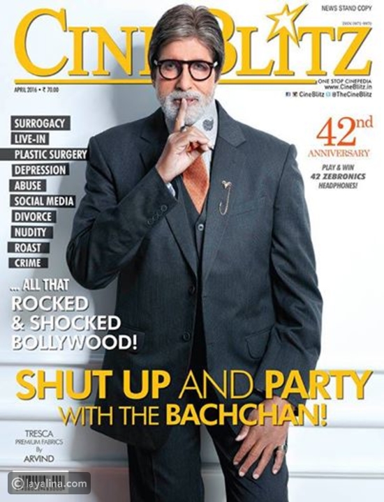 بمناسبة احتفاء مجلة CineBlitz بمرور 42 سنة على تأسيسها ظهر النجم أميتاب باتشان على غلاف العدد الجديد من المجلة لشهر إبريل.