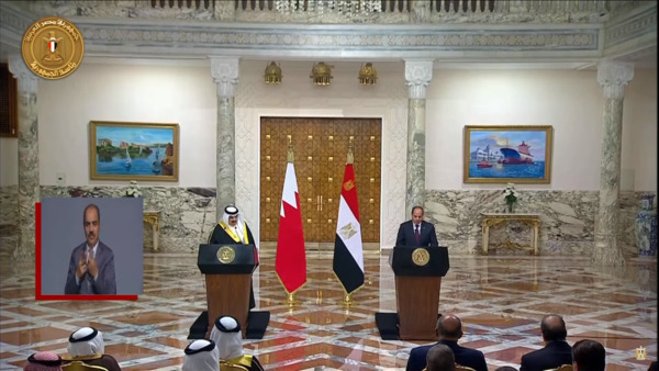 جاءت رسائل الرئيس خلال مؤتمر صحفي مع عاهل البحرين الملك حمد بن عيسى، الذي يزور مصر اليوم الأربعاء. وجاءت رسائل الرئيس السيسي على النحو التالي: