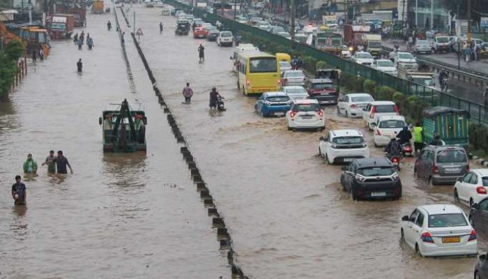 وقال متحدث باسم مجلس المدينة إن الأمطار الغزيرة تسببت في تراكم المياه في عدة مناطق من مومباي وتعليق خدمة القطارات .