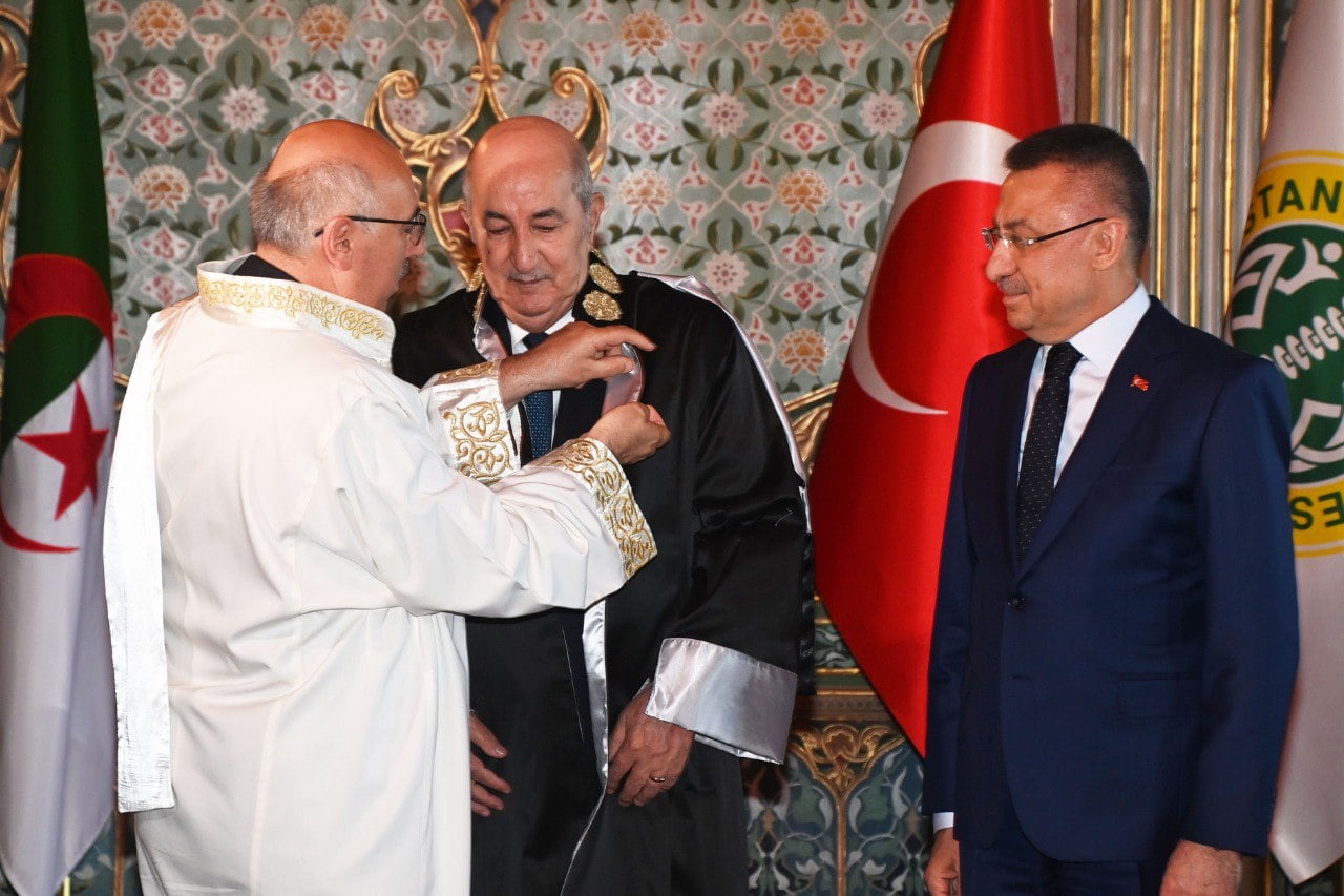 قلدت جامعة إسطنبول، رئيس الجمهورية الجزائرية عبدالمجيد تبون، درجة الدكتوراه الفخرية، اليوم الثلاثاء، بحضور نائب الرئيس التركي فؤاد أوكتاي، وذلك بحسب ما نشره موقع «الإذاعة الجزائرية».