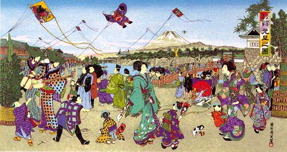 وعلي مدار ألف عام خضعت الطائرة الورقية في اليابان لتطور كبير وتم ابتكار أنواعا عديدة منها، بفعل توافر الخامات الجيدة من الورق والخيزران وخيوط القنب، ولكنها حتى ذلك الوقت كان اللعب بها حكرا على النبلاء فقط بفعل التكلفة العالية للورق.