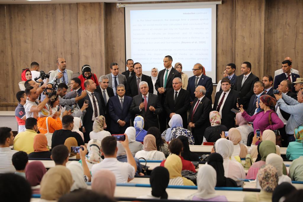 وأشاد الوزير بمستوى تجهيزات الجامعة والذي يجعلها ضمن جامعات الجيل الرابع الذكية، والتي تضم معامل وورش عمل مُزودة بأحدث الوسائط التكنولوجية لتقديم تجربة تعليمية متميزة وتقديم برامج دراسية حديثة تواكب مُتطلبات سوق العمل المحلي والإقليمي والدولي.