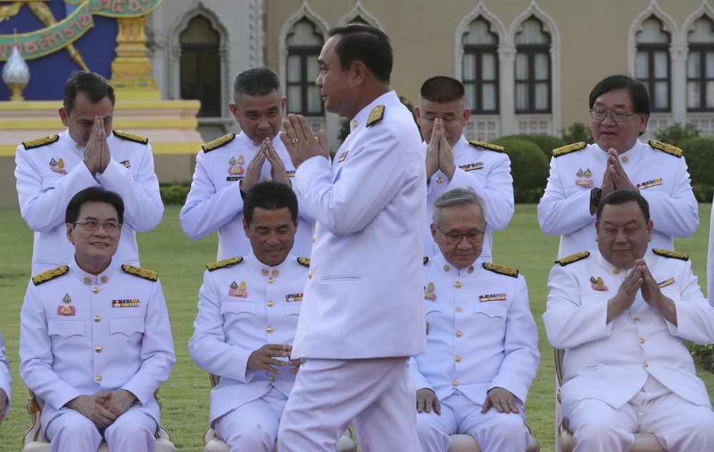 وقام أعضاء الحكومة الجديدة، البالغ عددهم 30 وزيرًا، بالإضافة إلى رئيس الوزراء، برايوت تشان أوتشا، بالانبطاح أمام ملك تايلاند.