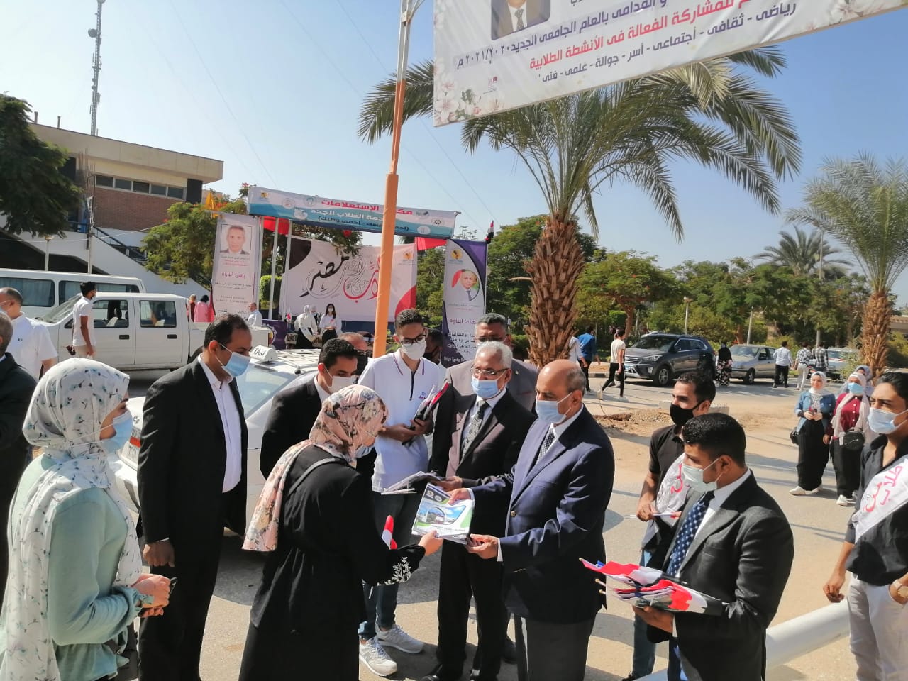 ومن جانبه، أشار الدكتور عصام فرحات نائب رئيس الجامعة لشئون التعليم والطلاب، إلى أن الإدارة العامة لرعاية الطلاب ومكاتبها بالكليات قد أعدت مكاتب لاستقبال الطلاب الجدد والقدامى بالبوابات الرئيسية وبالكليات لتوجيه الطلاب وتعريفهم بجامعتهم، والخدمات الإلكترونية الجديدة التي تقدمها لطلابها، وآليات التعليم الهجين الجديد، وكذلك توعيتهم بضرورة المشاركة في مختلف الأنشطة الطلابية التي تعمل على تنمية مهاراتهم الجسدية والفكرية والعقلية، والقدرات الابتكارية، بالإضافة إلى دعوة طلابها من ذوي القدرات الخاصة للمشاركة في الأنشطة الطلابية، والتي سيتم تنفيذها هذا العام بآليات جديدة تضمن الحفاظ على صحة الطلاب وسلامتهم دون الإخلال بأهمية النشاط الطلابي وممارسته.