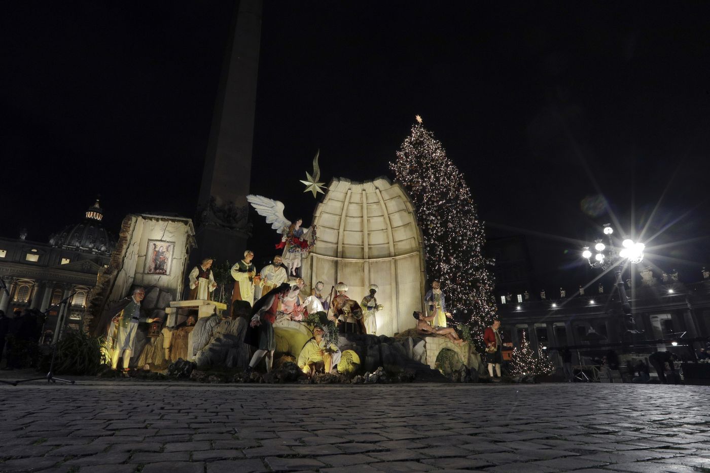 ومن المقرر أن يقدم البابا فرنسيس "مشهد المهد" في السابع من ديسمبر المقبل، بعدها تُضاء شجرة عيد الميلاد التقليدية بالساحة.