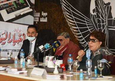 مفيد فوزي يدير حوار الذكريات مع سيدة المسرح.. ومازن الغرباوي يطلب من الحضور الوقوف دقيقة صمت على روح شقيقة الفنان محمد صبحي الذي اعتذر عن عدم الحضور