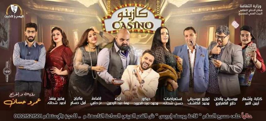 مسرحية "كازينو" كتابة وأشعار أيمن النمر، وموسيقى وألحان حازم الكفراوي، وتوزيع موسيقي محمد الكاشف، واستعراضات حسن شحاتة، وديكور محمد عبدالحميد، وأزياء مها عبدالرحمن، وإضاءة عز حلمي، ومكياچ أمل حسام، ومادة فيلمية خالد مهيب، رؤية وإخراج عمرو حسان.