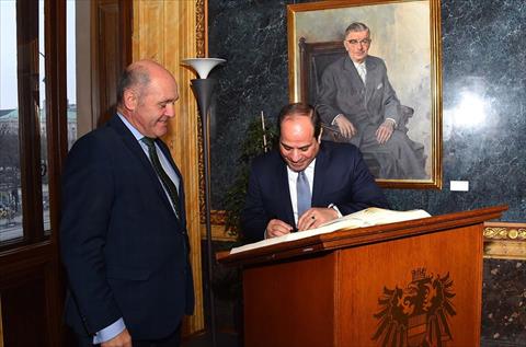 زار الرئيس عبد الفتاح السيسي اليوم الإثنين المجلس الوطني البرلمان النمساوي، وذلك في إطار اليوم الأول من زيارته الرسمية إلى فيينا، وكان في استقباله فولفجانج سوبوتكا رئيس المجلس.