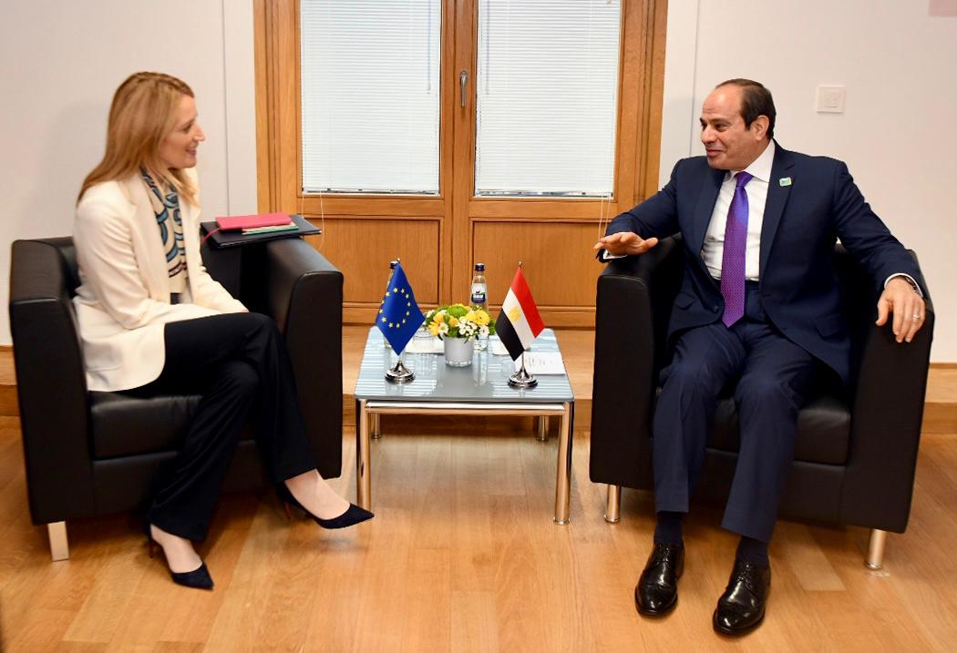 التقى الرئيس عبد الفتاح السيسي، اليوم، مع روبيرتا ميتسولا، رئيسة البرلمان الأوروبي، وذلك على هامش زيارتة إلى العاصمة البلجيكية بروكسل.