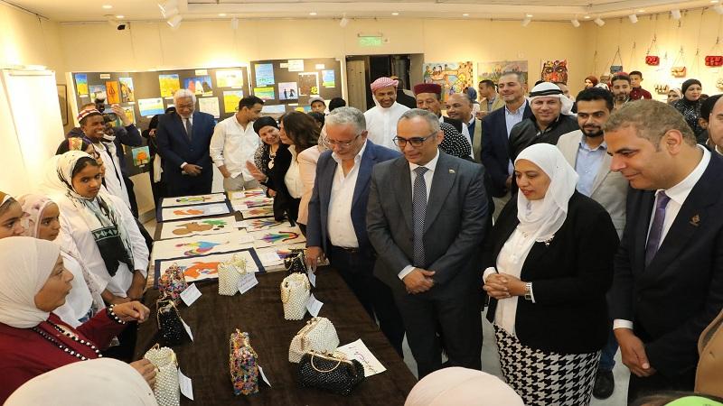 وتفقد الحضور المعرض الفني نتاج الورش الفنية والحرفية والتراثية التي نفذت خلال الأسبوع الثقافى وهي ورش الإكسسوارات، الخيامية، الاركيت، إعادة التدوير، شنط الخرز، الجلود، والرسم بالموسيقى، الرسم على السيراميك، اصنع كتابك، شنط الشبك.