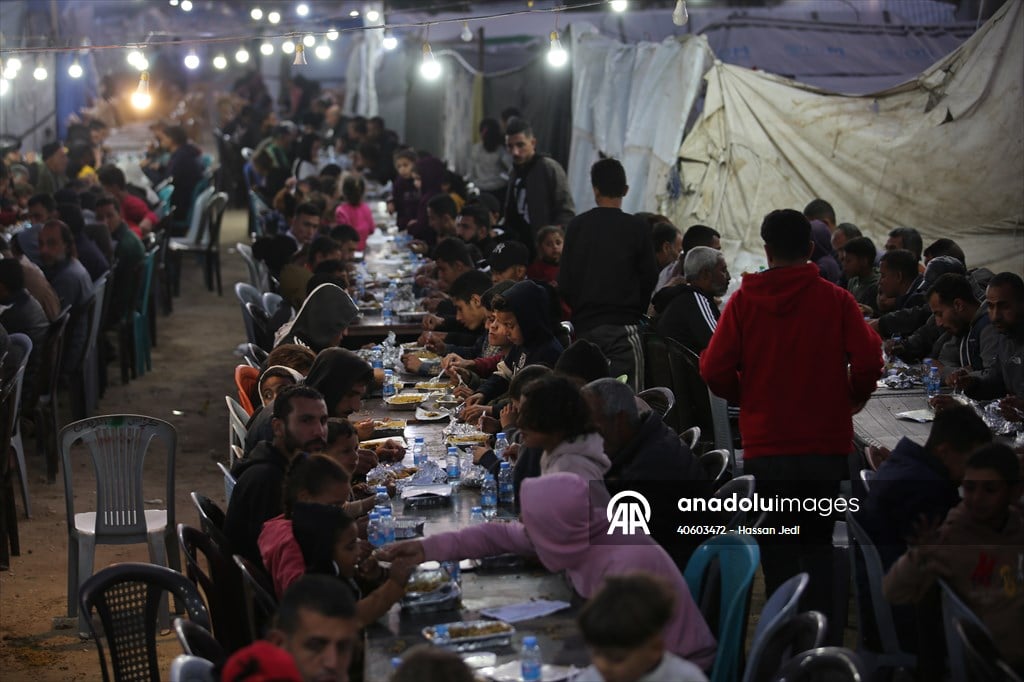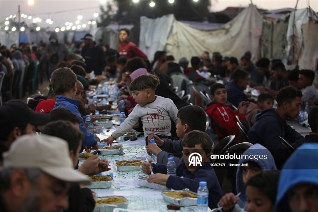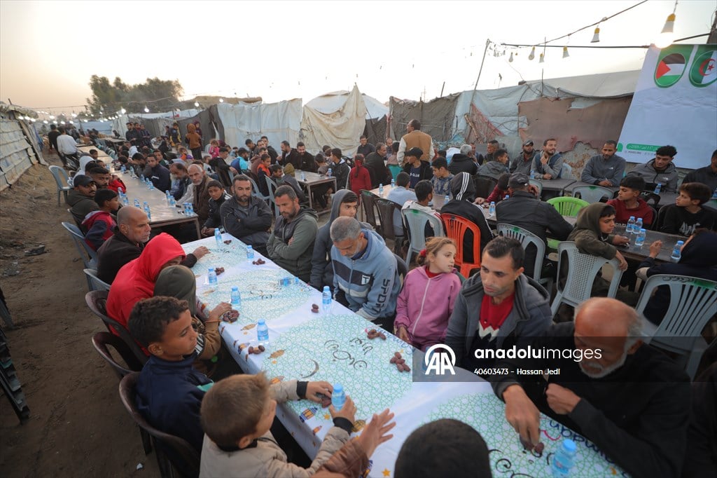 وقال مدير دائرة المشاريع في الهيئة سعيد العرقان: "نحن هنا بين الخيام والركام لنؤكد تمسكنا بهذه الأرض، كنا في الأعوام السابقة نفطر في بيوتنا، واليوم نفطر فوق أنقاضها تعزيزا لصمود أهلنا"، وفقا للأناضول.