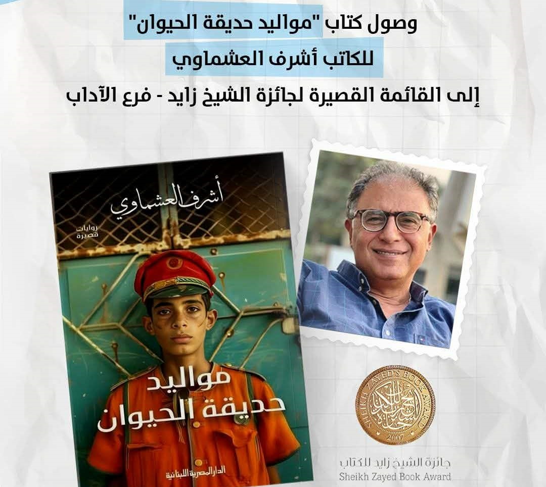 هنأت الدار المصرية اللبنانية الكاتب والروائي أشرف العشماوي بمناسبة وصول كتابه «مواليد حديقة الحيوان» الصادر عن الدار إلى القائمة القصيرة لجائزة الشيخ زايد للكتاب 2026 – فرع الآداب.