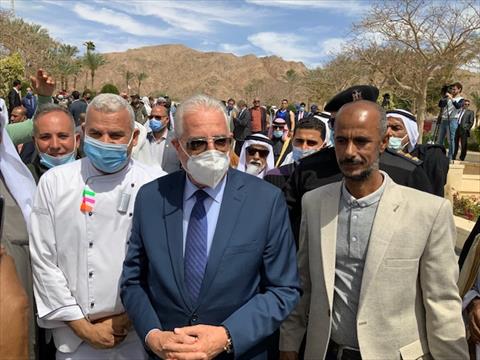 وأكد أن الرئيس عبد الفتاح السيسي وجه بضرورة الاهتمام بسيناء، وبالفعل جري تنفيذ العديد من المشروعات التنموية والخدمية في جنوب سيناء، أبرزها الطريق الدولي النفق شرم الشيخ، والتجمعات التنموية ومحطات تحلية مياه البحر، بالإضافة إلى التوسع في الزراعة، معلنًا إنشاء 50 بيتًا بدويًا في طابا؛ ليصبح إجمالي البيوت البدوية بها 200 بيت لخدمة الأهالي.