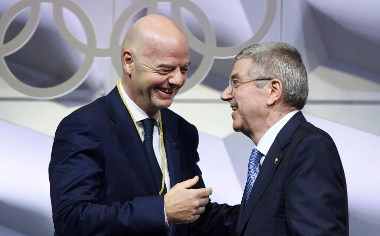 دافع ديك باوند عضو اللجنة الأولمبية الدولية لفترة طويلة عن توماس باخ رئيس اللجنة وجياني إنفانتينو رئيس الاتحاد الدولي لكرة القدم (فيفا) لقيامهما بالتواصل في وقت سابق مع الرئيس الروسي فلاديمير بوتين.