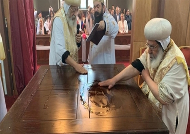 ووصل قداسة البابا تواضروس الثاني، في وقت سابق اليوم إلى الكنيسة، حيث تم تدشين مذبح الكنيسة وحامل الأيقونات وأيقونة البانطوكراتور في شرقية الهيكل، المعروفة باسم "حضن الآب".