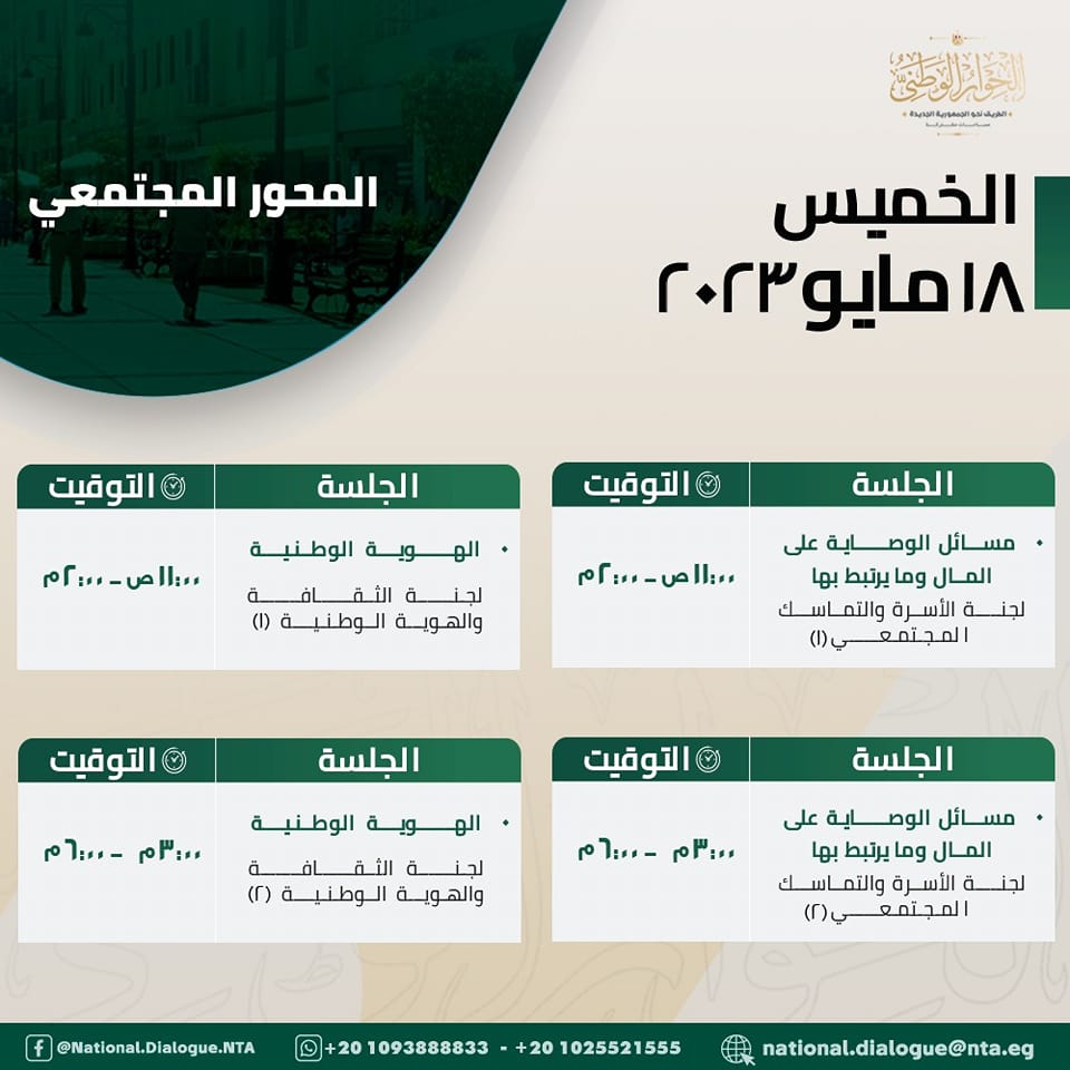 تنطلق، اليوم الخميس، أولى جلسات المحور المجتمعي للحوار الوطني بمناقشة بعض القضايا التي تهم المواطنين.