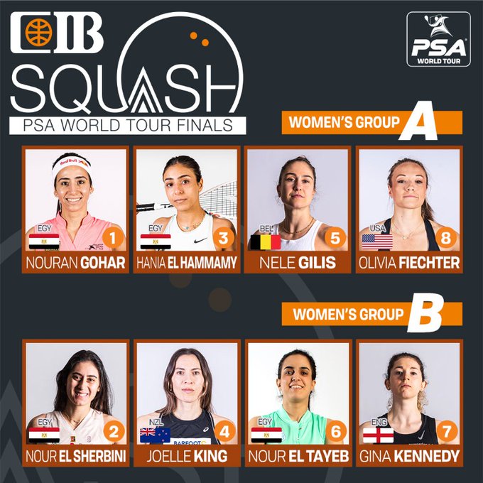 المجموعة الثانية: نور الشربيني، النيوزيلندية جويل كينج، نور الطيب والإنجليزية جورجينا كيندي.