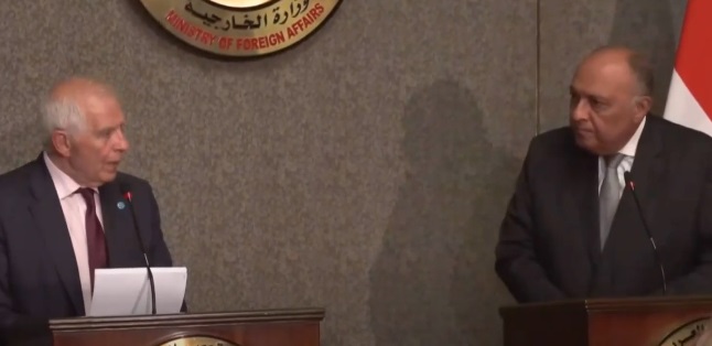 ورحب شكرى خلال المؤتمر الصحفي بالمسئول الأوروبي الذي يقوم حاليا بزيارة إلى القاهرة.. واصفا بوريل بانه "صديق عزيز".
