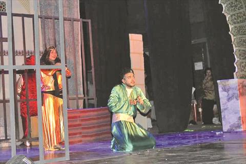 وأضاف: ونرى من خلال العرض أن المفتى يسير فى الأرض فسادا يظهر للجميع كظل الله فى أرضه يدبر المكائد، يساوم الجميع، يحدثهم عن الأخرة بينما هو أبعد الناس عن الله، فهدفه كان أن يلقى بغريمه فى السجن مستغلا ذلته لكى يفوز بزوجته «مؤمنة».