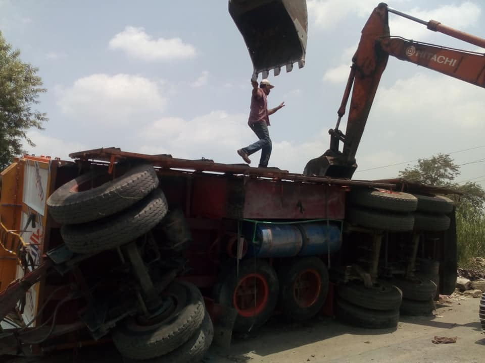 وتوجهت رئيسة المركز إلى موقع انقلاب المقطورة وتبين أنها سيارة نقل محملة بالقمامة بطريق سندوب تلبانة أمام منطقة تجنيد المنصورة، وأسفر الحادث عن حدوث تلف كامل بسيارة ملاكي ماركة هونداي ماتركس وتلف صندوق سيارة ربع نقل وتلف المقطورة المنقلبة وتلف بأعمدة الإنارة بالطريق وقطع في الأسلاك.