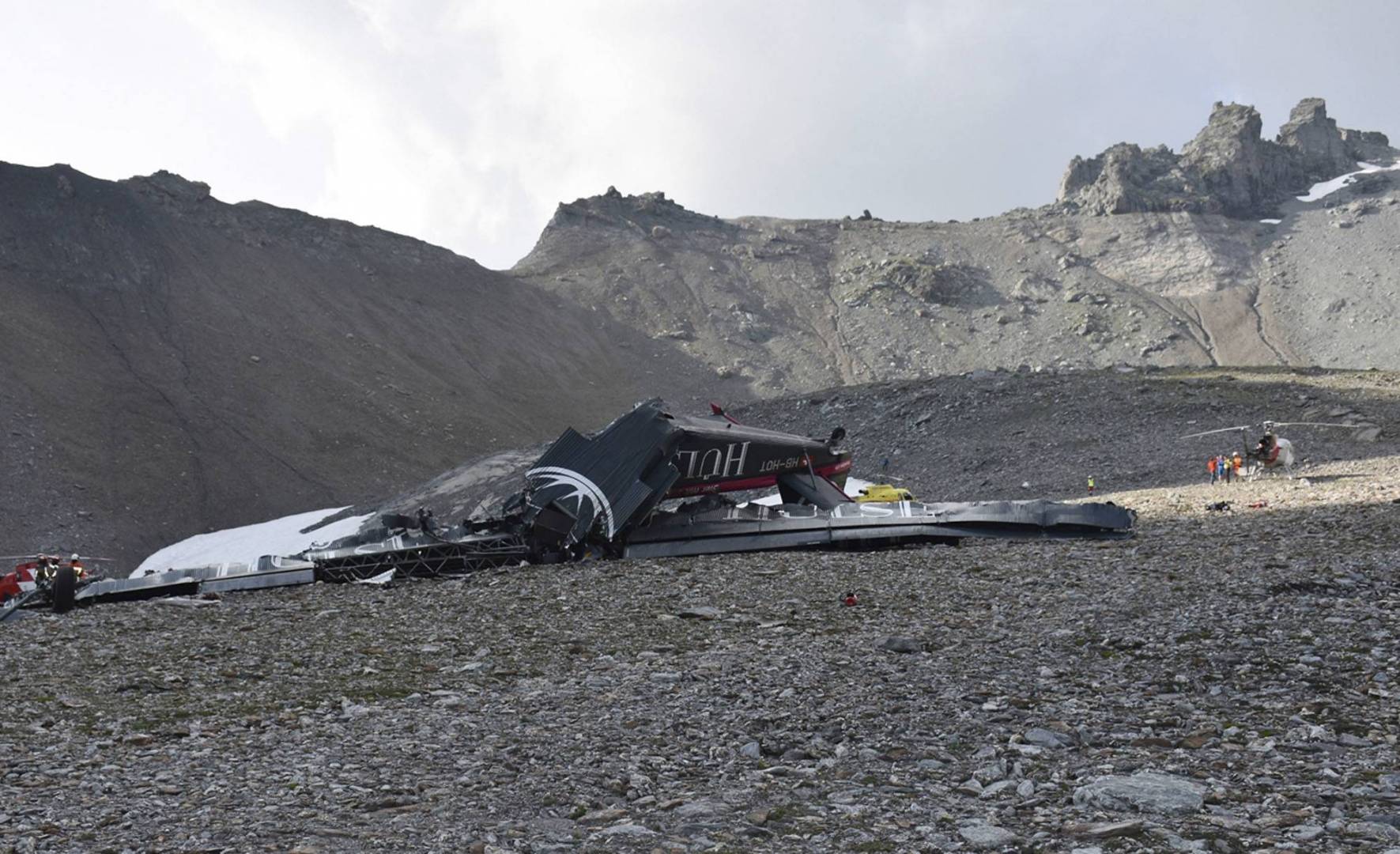 وتقول السلطات النمساوية إن الطائرة اصطدمت بأحد الجبال على ارتفاع 2400 متر، وتظهر الصور أن بقايا حطام الطائرة كانت تشتعل فيها النار فوق إحدى الصخور.