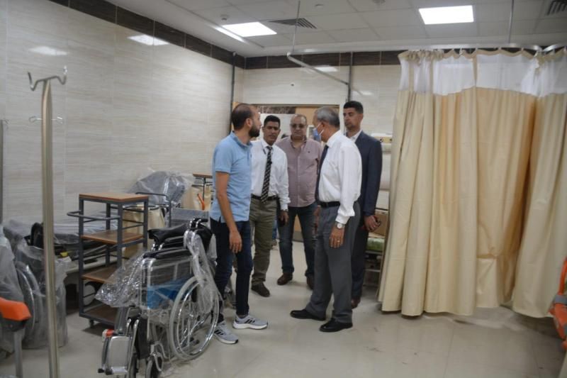 وتفقد المحافظ، أجنحة المستشفى والعيادات الخارجية، بعد الانتهاء من مبنى العيادات الخارجية بالكامل، وقسم الاستقبال والطوارئ بأجنحته المختلفة وقسم عمليات الطوارئ، وقسم الحضانات والتي تتكون من 13 حضانة وتم تجهيزها بالكامل، وغرف العمليات الكبرى والصغرى بعد تجهيزها بكل المستلزمات الطبية اللازمة لتشغيلها، بالإضافه لتفقده قسم الغسيل الكلوي والذي يحتوي على 22 جهازا تم تركيبهم بالكامل.