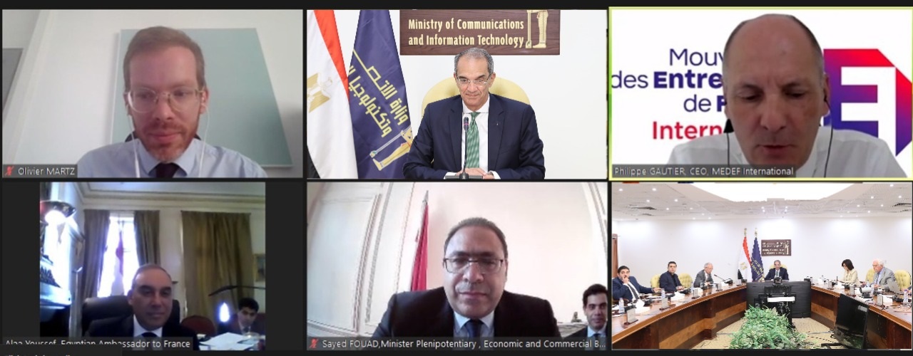 اجتمع اليوم الدكتور/ عمرو طلعت وزير الاتصالات وتكنولوجيا المعلومات عبر تقنية الفيديوكونفرنس مع عدد من رؤساء وممثلى كبرى شركات التكنولوجيا ومؤسسات الأعمال الفرنسية الأعضاء بمجلس أرباب العمل الفرنسى "ميديف" MEDEF؛ شارك فى اللقاء السيد/ علاء يوسف سفير جمهورية مصر العربية لدى باريس. وشهد اللقاء تسليط الضوء على الفرص الاستثمارية بقطاع الاتصالات وتكنولوجيا المعلومات المصرى، والاستراتيجيات التى تم إطلاقها لتنمية هذا القطاع والجهود المبذولة لتوفير تسهيلات وحوافز للشركات الأجنبية الراغبة فى الاستثمار مع التركيز على خدمات التعهيد.
