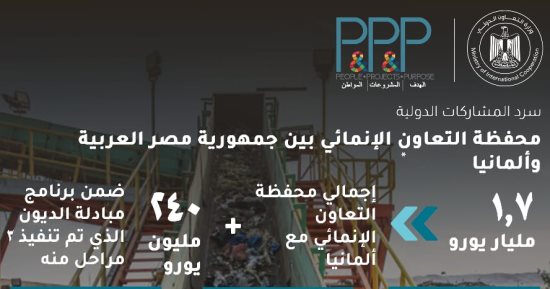 ووفقا للبيان تسجل محفظة التعاون الإنمائي الجارية مع جمهورية ألمانيا الاتحادية تسجل 1.7 مليار يورو، تم من خلالها تمويل 30 مشروعًا في صورة قروض ومنح دعم فني ومساهمات مالية ومبادلة ديون، واستفاد منها العديد من القطاعات من بينها كفاءة الطاقة والطاقة المتجددة، والصرف الصحي، والري، والدعم المائى.
