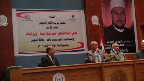وقال محافظ السويس، إنَّ الهدف من المعسكر هو توحيد الخطاب الديني، مطالبًا الائمة بتسلح بالعلم من خلال القراءة الكتب الدينية والأحاديث؛ حيث يتمكنوا من توصيل المعلومة الصحيحة إلى المسلمين بالمساجد، كما طلب من مدير الدعوة بمديرية الأوقاف بالمحافظة، الشيخ إيهاب فتحي، بدعوة جميع الأئمة والبالغ عددهم 65 إمام لحضور تلك المؤتمر من أجل استفادة أكبر عدد ممكن من الأئمة.