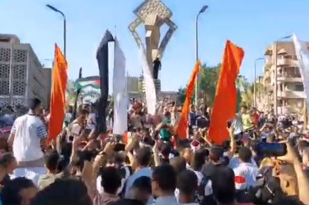 وبدأت تظاهرة طلاب جامعة سوهاج من أمام مبنى الإدارة المركزية للجامعة انطلاقا إلى ميدان الشبان المسلمين حاملي علم فلسطين مرددين "بالروح بالدم نفديكي يا فلسطين".