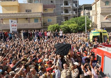 شيع الآلاف من أهالى أبوحمص فى جنازة عسكرية وشعبية مهيبة، جثمان الشهيد رائد أحمد فوزى زيد لمثواه الأخير بمنطقة الداروية بمدينة أبو حمص، والذى استشهد إثر انفجار عبوة ناسفة بمدرعته بمنطقة جرادة غرب مدينة الشيخ زويد بسيناء، مساء أمس.