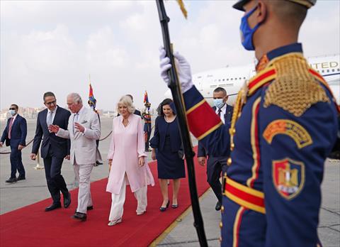 عرضت فضائية «TeN» مقطع فيديو يرصد لحظة وصول ولي عهد بريطانيا الأمير تشارلز، اليوم الخميس، إلى العاصمة المصرية القاهرة، رفقة زوجته الأميرة كاميلا دوقة كورنوول، قادمًا من الأردن، في زيارة تستمر لمدة يومين.
