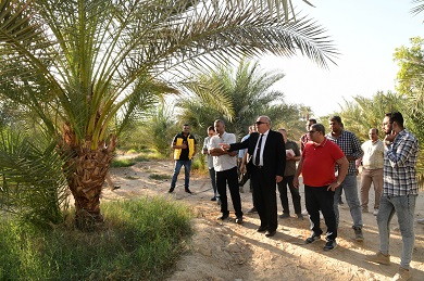 تابع اللواء أشرف الداودي محافظ قنا، اليوم، أعمال رعاية النخيل البرحي والمجدول بمزرعة النخيل التابعة لمشروعات الأمن الغذائي بمنطقة المعنا؛ للاطمئنان علي تطبيق أفضل الأساليب العلمية في رعاية أشجار النخيل.