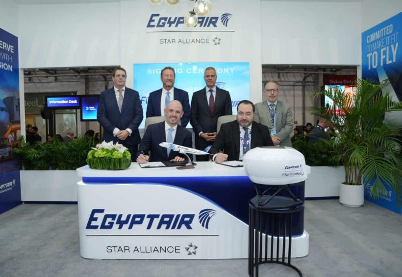 وجرى توقيع الاتفاقية خلال فعاليات اليوم الثاني من معرض دبي للطيران 2025، بحضور الطيار أحمد عادل رئيس مجلس الإدارة والعضو المنتدب التنفيذي للشركة القابضة لمصر للطيران، حيث وقّعها كل من الطيار وليد سليمان رئيس أكاديمية مصر للطيران للتدريب، وMatt Laue نائب رئيس المبيعات في FlightSafety International.