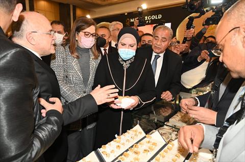جاء ذلك اليوم السبت، خلال افتتاح الوزيرة والدكتور علي المصليحي وزير التموين والتجارة الداخلية، لفعاليات المعرض والمؤتمر الأول للذهب والمجوهرات "نيبو 2022"، والذي يقام خلال الفترة من 19-21 فبراير الجاري، وينظمه الاتحاد العام للغرف التجارية تحت رعاية الدكتور مصطفى مدبولي، رئيس مجلس الوزراء، وبحضور الدكتورة هالة السعيد، وزيرة التخطيط والتنمية الاقتصادية والدكتور خالد العناني، وزير السياحة والآثار واللواء خالد عبد العال محافظ القاهرة، ومحمد المصري، النائب الأول لرئيس الاتحاد العام للغرف التجارية، والدكتور علاء عز الأمين العام لاتحاد الغرف التجارية والمهندس هاني ميلاد رئيس الشعبة العامة للذهب والمشغولات الذهبية باتحاد الغرف التجارية ويشارك في المعرض 30 شركة كبرى عاملة في مجالات صناعة وتجارة الذهب إلى جانب عدد كبير من كبار المصممين المحليين والعالميين.