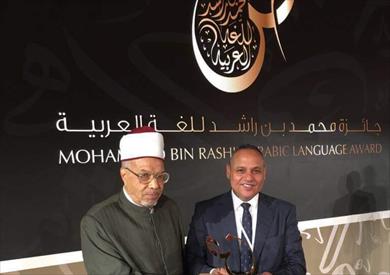 وتسلم الجائزة فى احتفال كبير بمدينة دبي بالإمارات، فضيلة د. محمد عبد الفضيل القوصى عضو هيئة كبار علماء الأزهر الشريف ونائب رئيس مجلس إدارة المنظمة العالمية لخريجى الأزهر، ود. محمود صقر رئيس أكاديمية البحث العلمى.