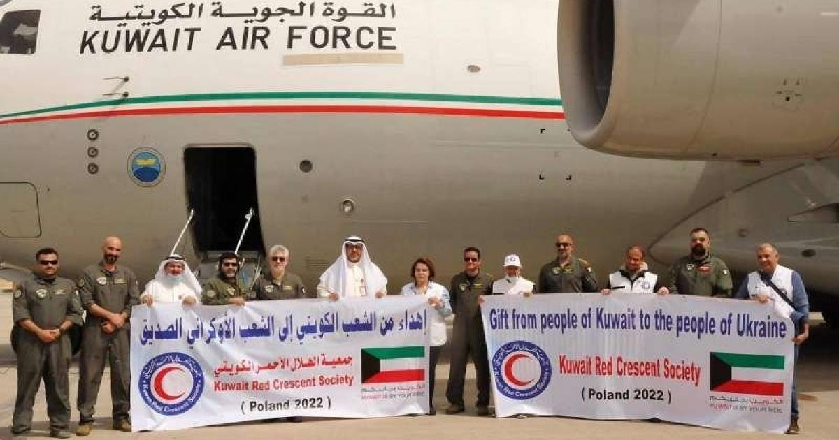 ونقلت وكالة الأنباء الكويتية "كونا"، عن نائب رئيس مجلس إدارة جمعية الهلال الأحمر الكويتي أنور الحساوي قوله إنه "بناء على توجيهات أمير البلاد الشيخ نواف الأحمد الجابر الصباح، أقلعت اليوم طائرة الإغاثة محملة بالمستلزمات الطبية والغذائية والاحتياجات الإنسانية المقدمة من حكومة الكويت إلى مطار بوخارست في رومانيا لإيصالها للشعب الأوكراني الذي يواجه ظروفا معيشية صعبة جراء الأزمة الإنسانية الحالية وذلك بالتنسيق مع وزارتي الخارجية والدفاع الكويتيتين.