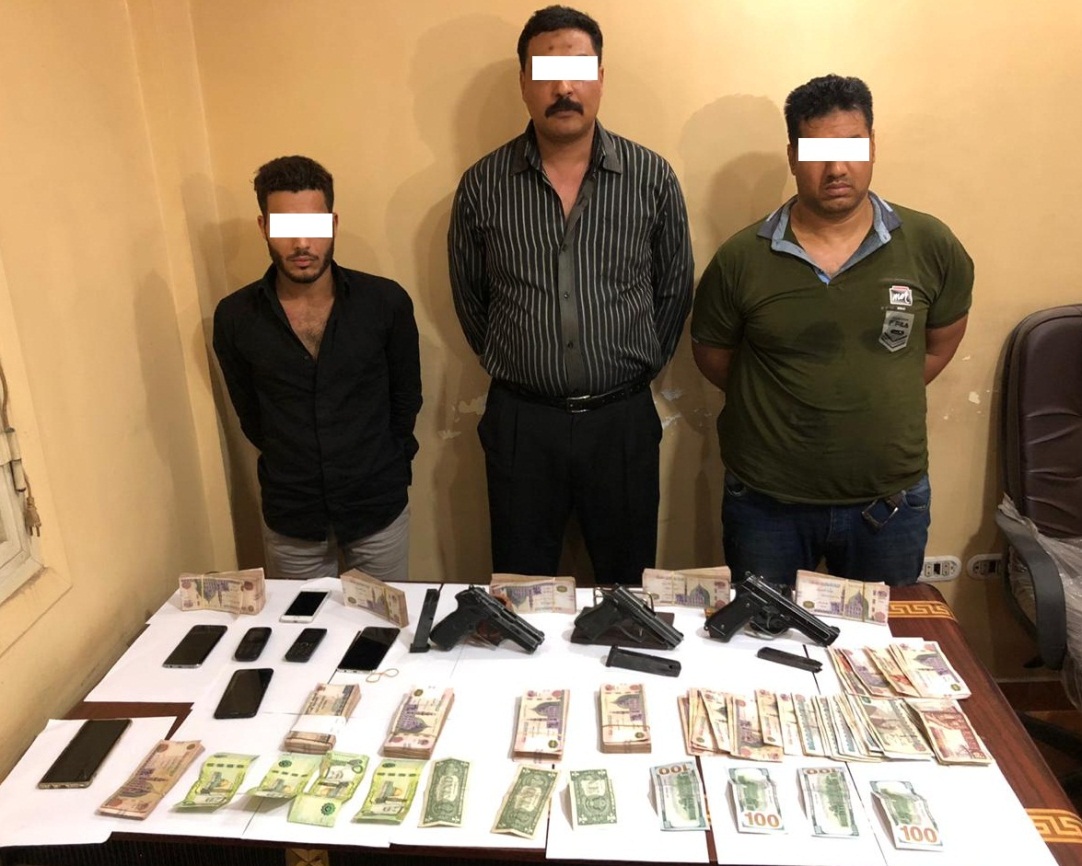 وألقت قوات الأمن القبض على 5 متهمين وبحوزتهم "3 طبنجات صوت، 3 طلقات، 192,705 جنيه، 206 ريالات سعودية، 403 دولارات، هاتفي محمول.